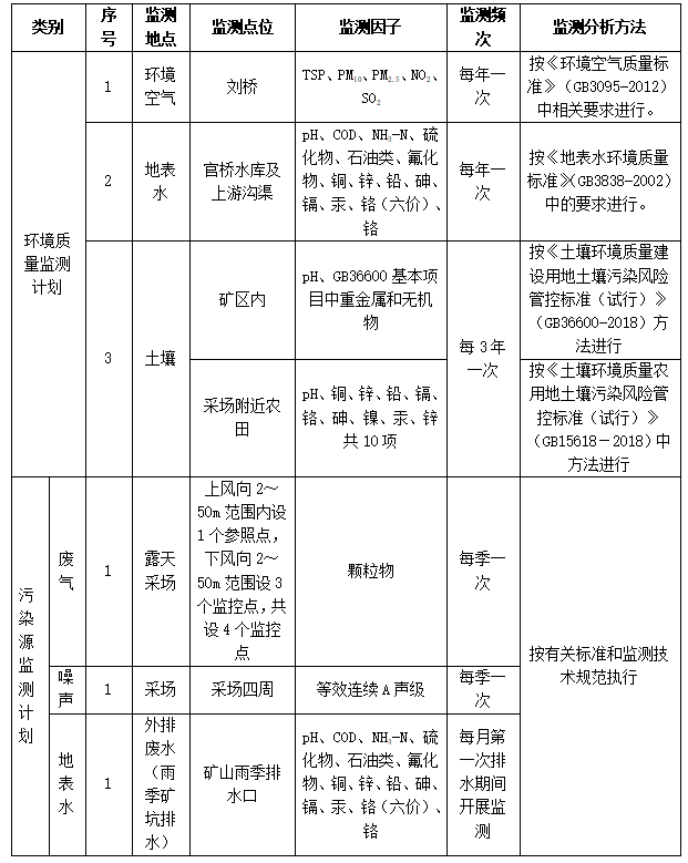 (6)招標(biāo)范圍及內(nèi)容:對興天礦業(yè)諭興礦進行環(huán)境監(jiān)測和檢測,包括但不限于土壤、地下水、廢水、廢氣、噪聲等污染源進行監(jiān)測和檢測,每季度出具監(jiān)測和檢測報告。監(jiān)測和檢測報告需滿足各級主管單位、國家法律法規(guī)、行業(yè)檢測標(biāo)準(zhǔn)、《滁州市興天礦業(yè)有限公司安徽省天長市諭興地區(qū)建筑用玄武巖礦年產(chǎn) 800 萬噸露天采礦項目環(huán)境影響報告表》中所涉及范圍等要求,保證審批順利通過。