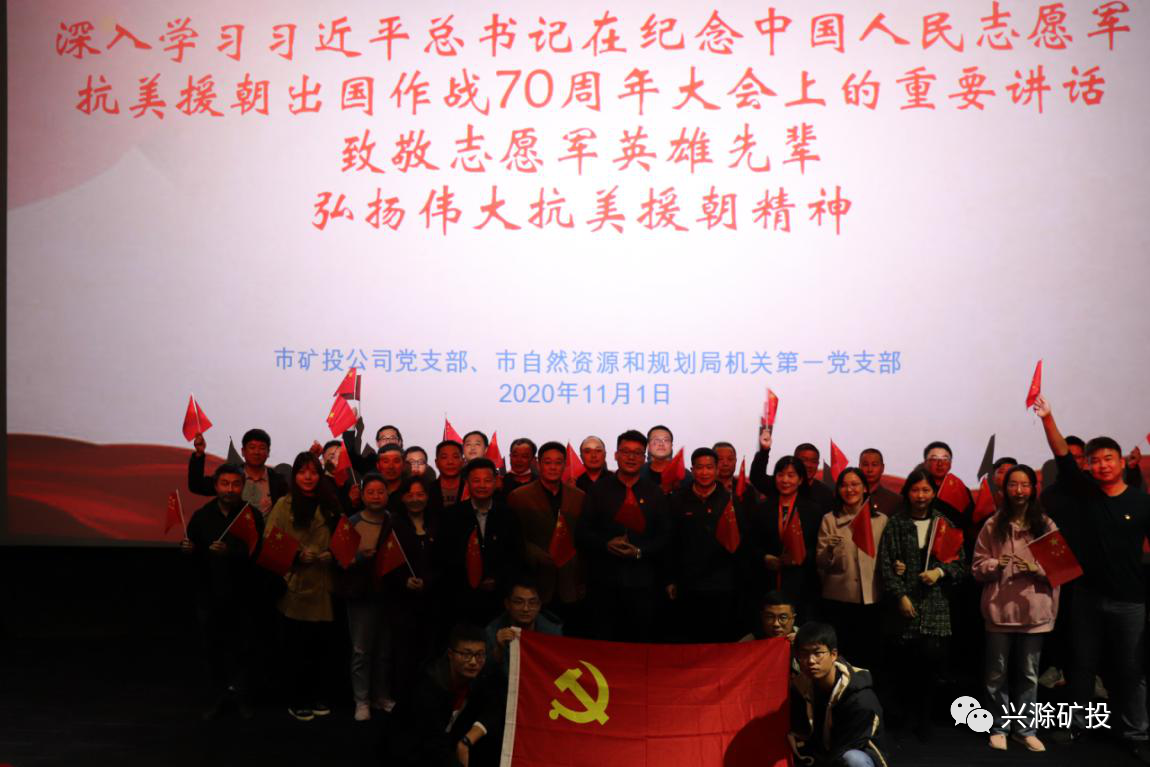 11月1日下午,市礦投公司黨支部聯(lián)合市自然資源和規(guī)劃局機(jī)關(guān)第一黨支部開展愛國主義主題教育活動(dòng),集中觀看習(xí)近平總書記在紀(jì)念中國人民志愿軍抗美援朝出國作戰(zhàn)70周年大會(huì)上的重要講話視頻和抗美援朝主題電影《金剛川》,共同緬懷中國人民志愿軍建立的不朽功勛,向創(chuàng)造偉大奇跡的志愿軍將士致以崇高敬意。