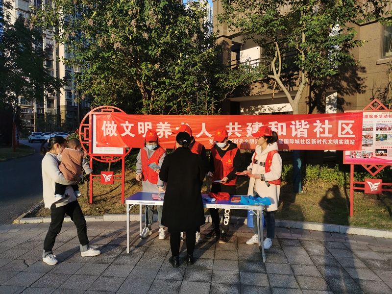 志愿者向社區(qū)群眾宣傳文明養(yǎng)犬、《滁州市文明行為促進(jìn)條例》、《滁州文明16條》(2.0版)、《滁州市民公約》等內(nèi)容,引導(dǎo)群眾駕乘電動(dòng)車佩戴頭盔,厲行勤儉節(jié)約,反對(duì)鋪張浪費(fèi),養(yǎng)成文明健康綠色環(huán)保的生活方式,樹立文明新風(fēng)尚,爭做文明有禮滁州人。