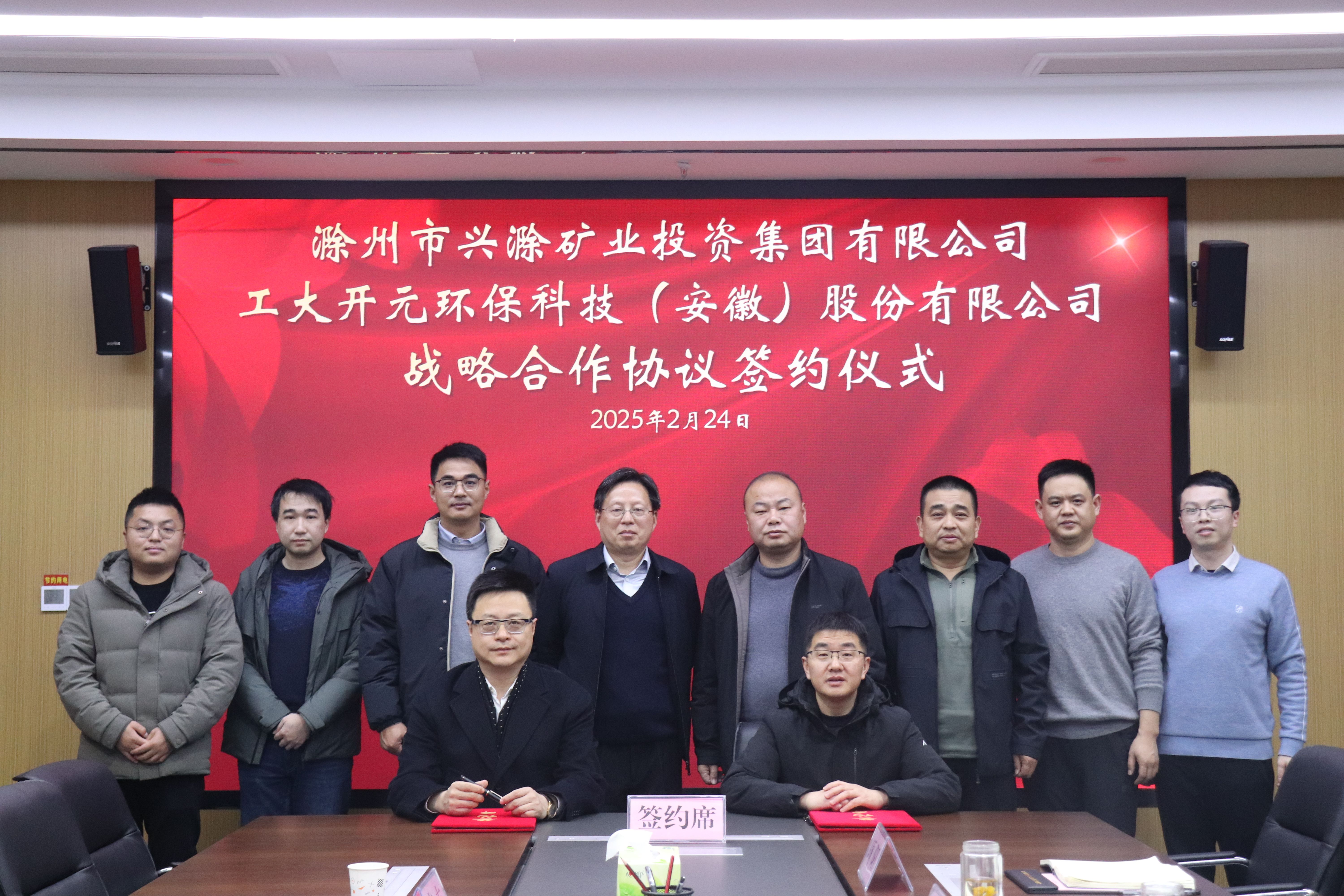 2月24日下午,市礦投集團與工大開元環(huán)保科技(安徽)股份有限公司簽訂戰(zhàn)略合作協(xié)議儀式在市礦投集團舉行。工大開元公司董事長陳斌、市礦投集團董事長王峰出席會議并代表雙方簽約,儀式由市礦投集團黨委委員、副總經理湯國水主持。