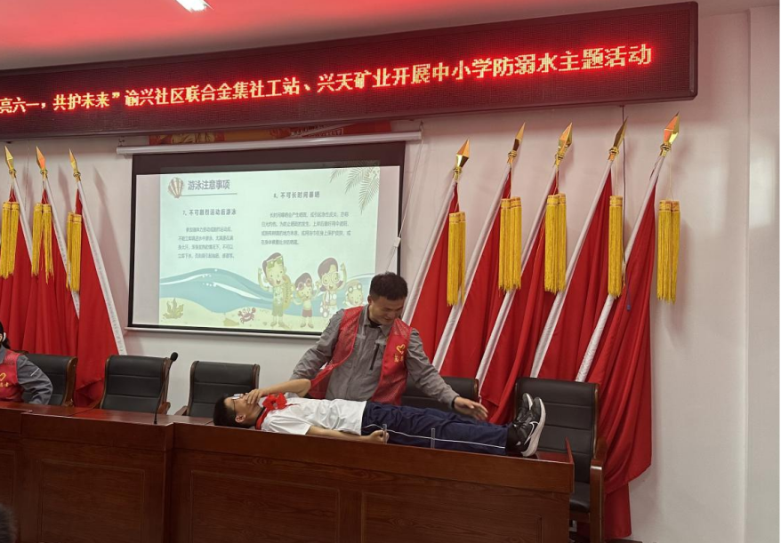 活動(dòng)現(xiàn)場,興天礦業(yè)志愿者通過發(fā)放防溺水知識(shí)手冊、播放防溺水科普視頻以及演示心肺復(fù)蘇等方式科普了基本防溺水及救護(hù)常識(shí),有效提高在場學(xué)生防溺水意識(shí)。