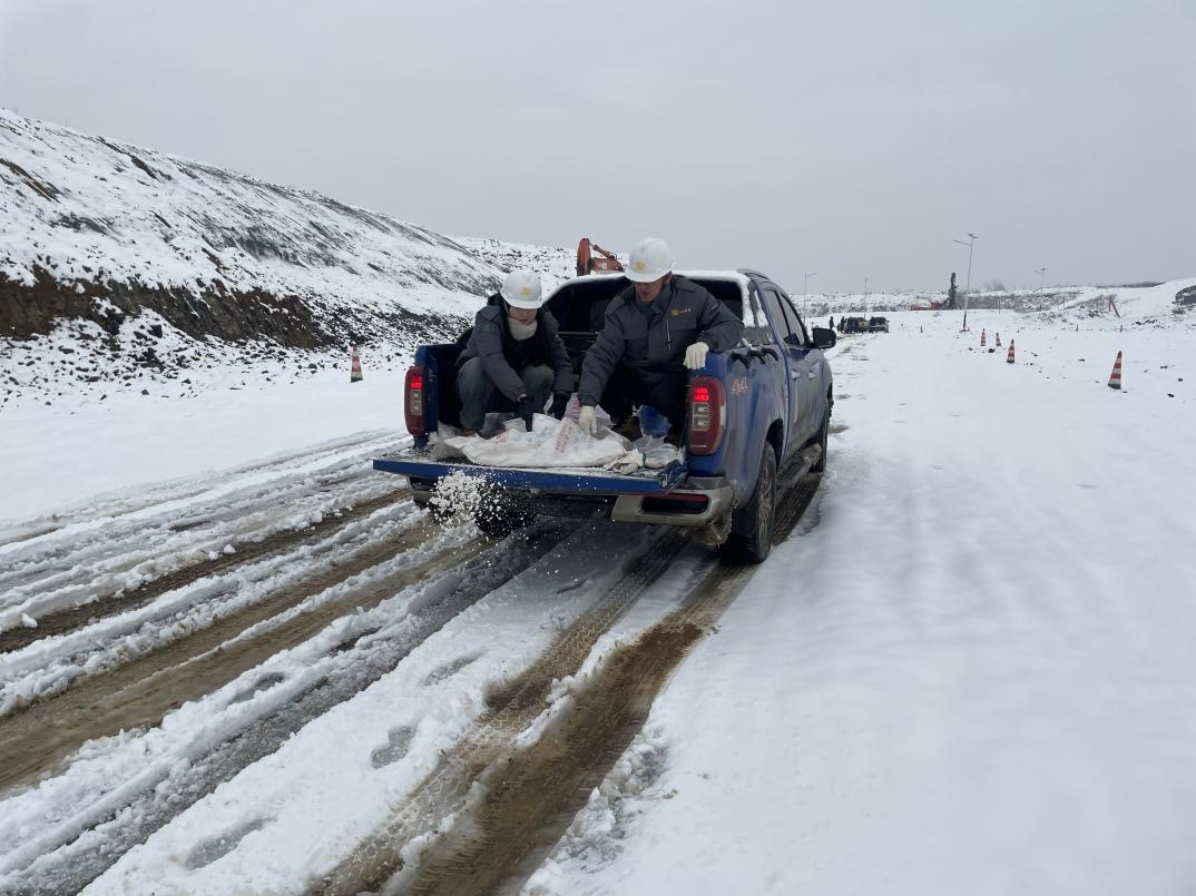 迎寒而上,盡心保障礦區(qū)生產(chǎn)。為應(yīng)對嚴(yán)寒天氣,早日實現(xiàn)礦區(qū)正常生產(chǎn)。19日上午10點,公司組織干部群眾深入礦區(qū),搬起融雪劑、揮著鐵鍬、掄起雪鏟,投入到清除礦區(qū)積雪的勞動中,累計拋灑融雪劑1500斤,基本覆蓋了礦區(qū)的所有運輸?shù)缆贰?/span>