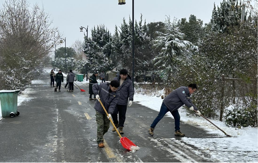 以“雪”為令,齊心協(xié)力清掃家園。19日上午8點,公司組織志愿者清掃辦公區(qū)積雪,志愿者們冒著颼颼襲來的寒風(fēng),紛紛拿起鐵鍬、掃帚等工具,相互配合、齊心協(xié)力,干的熱火朝天,不久,辦公區(qū)域積雪全部鏟除,保障了辦公區(qū)職工的出行安全。